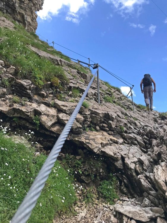 • Здесь есть страховочные тросы (via ferrata style), за которые можно держаться.
