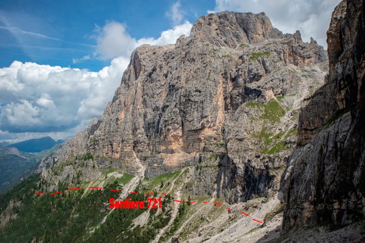 Во второй половина трека к Rifugio Velo della Madonna начинаются опасные участки, которые имеют экспозицию (открытость маршрута над обрывом). То есть участок тропы идёт по узкому карнизу или по склону, где рядом крутой обрыв. Сам путь может быть технически не очень сложным, но психологически опасным: если подскользнуться — риск падения большой. Поэтому на маршрутах с «экспозицией» требуется хорошая обувь, внимательность и иногда страховка (перила, каска).
