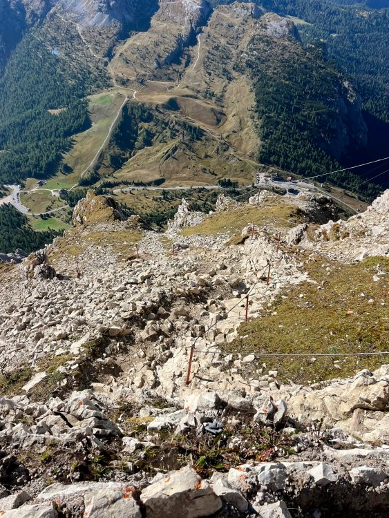 Склон массива Col dei Bos каменистый, насыпной, возможны срывы камней.