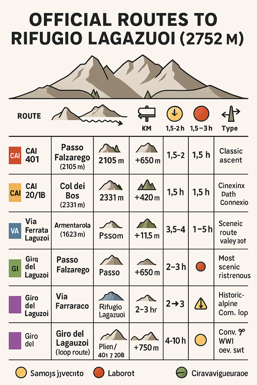 🟦 Основные приюты: Rifugio Lagazuoi, Scoiattoli, Averau, Nuvolau