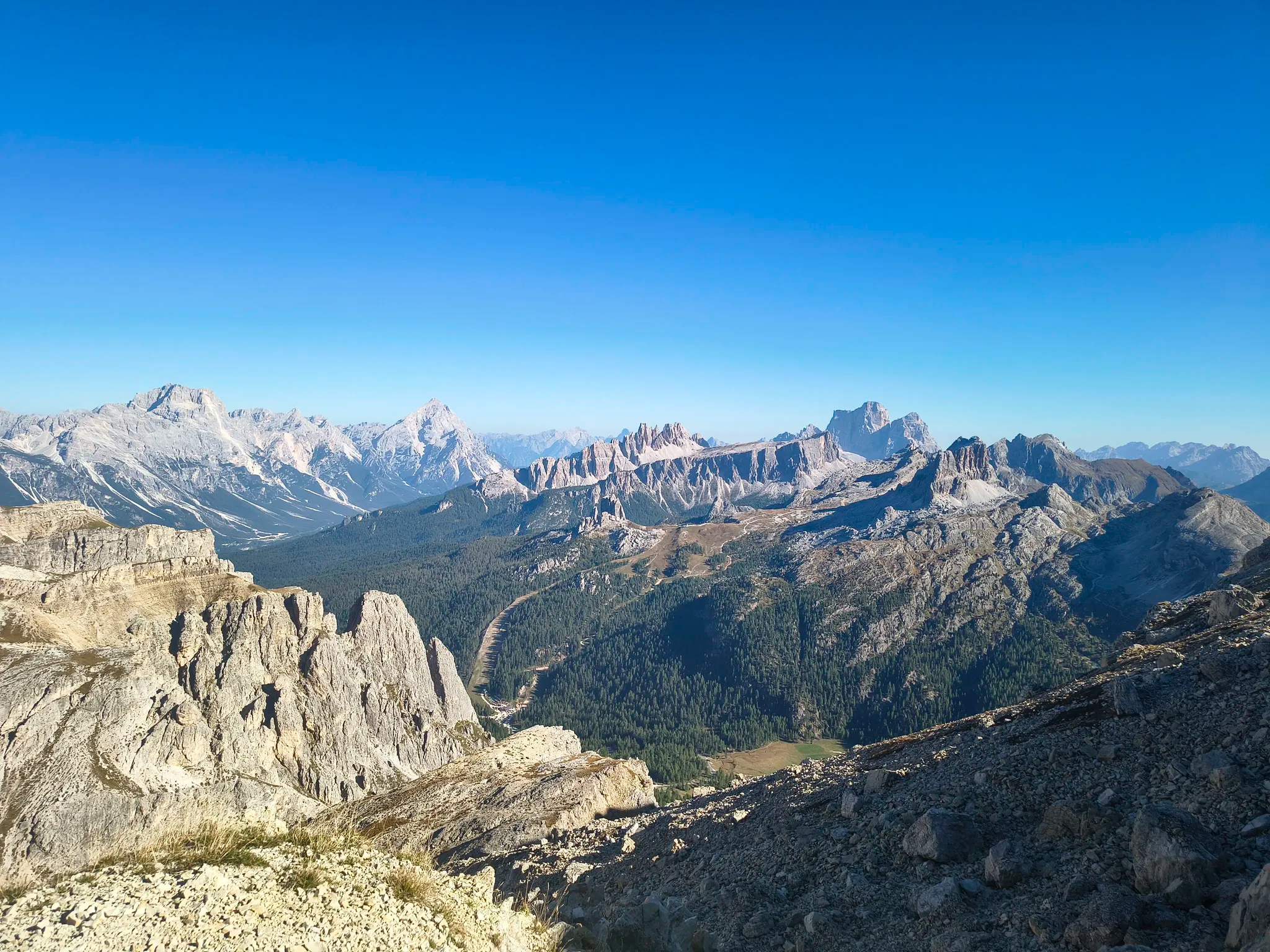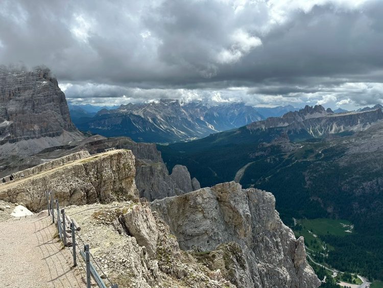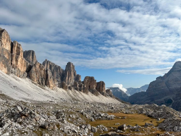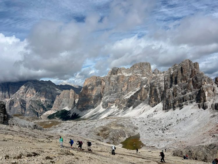 Средний участок: Появляются более открытые каменистые плато. Отсюда видны стены Tofane, Cinque Torri и сам массив Lagazuoi.